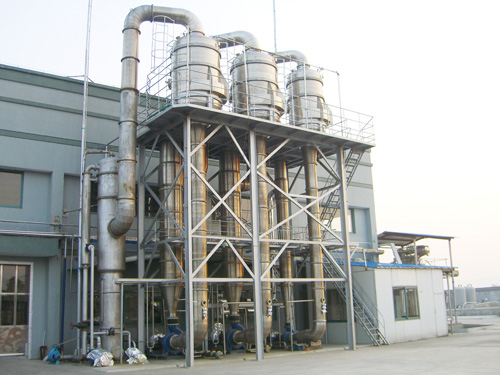 根據(jù)物料的特性及蒸發(fā)量的大小,可設(shè)計成單效或多效蒸發(fā)機組。