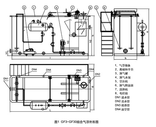 QF組合氣浮池由氣浮池體、溶氣系統(tǒng)、溶氣回流管路、溶氣水釋放裝置、刮渣裝置(根據(jù)用戶需要可以分別采用組合式、行車式和鏈板式)和電控柜等部件組成。氣浮分離技術(shù)是指空氣與水在一定的工作壓力下,使氣體大限度地融入水中,力求處于飽和狀態(tài),然后把形成的壓力溶氣水通過(guò)減壓釋放,產(chǎn)生大量的微細(xì)氣泡, 與水中的懸浮絮體充分接觸,使水中懸浮絮體粘附在微氣泡上,并隨氣泡一起浮到水面,形成浮渣并刮去浮渣,從而凈化水質(zhì)。