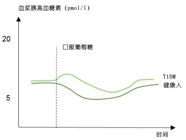 一般認(rèn)為T1DM患者高血糖的原因是選擇性丟失了大量的β細(xì)胞,導(dǎo)致胰島素分泌減少。然而,新出現(xiàn)的證據(jù)表明,胰高血糖素在T1DM病理生理學(xué)中扮演著重要角色。T1DM患者的胰高血糖素分泌障礙與兩種臨床表現(xiàn)有關(guān):餐后高胰高血糖素血癥和胰高血糖素對(duì)低血糖的反調(diào)節(jié)功能受損