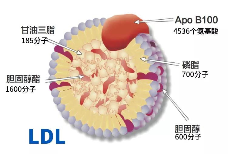 低密度脂蛋白(LDL)是一種運(yùn)載膽固醇進(jìn)入外周組織細(xì)胞的球形脂蛋白顆粒,核心包括1600 個(gè)膽固醇酯、700 個(gè)磷脂和600個(gè)游離膽固醇分子;LDL標(biāo)志蛋白Apo B-100[1]