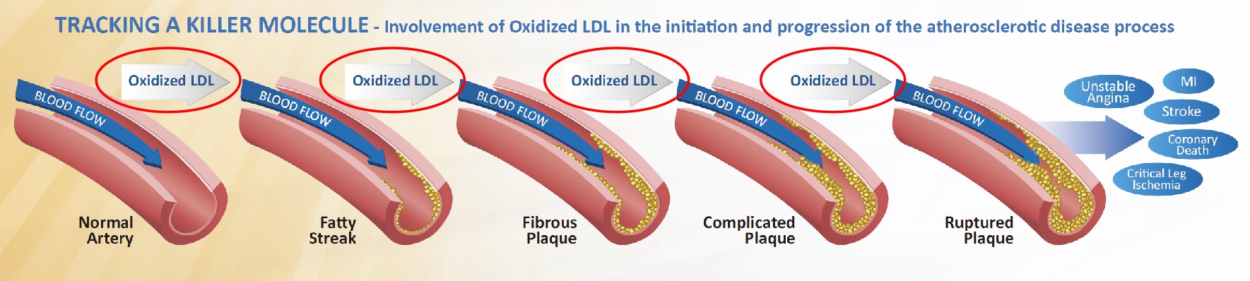 真正導(dǎo)致心血管疾病的是被氧化的低密度脂蛋白,也就是氧化低密度脂蛋白(ox-LDL)。如果沒(méi)有低密度脂蛋白膽固醇的氧化,冠狀動(dòng)脈疾病的進(jìn)程可能就無(wú)法啟動(dòng)或發(fā)展。所以,氧化低密度脂蛋白(ox-LDL)的形成才是動(dòng)脈粥樣硬化形成的關(guān)鍵啟動(dòng)因素,是動(dòng)脈粥樣硬化的“真兇”。