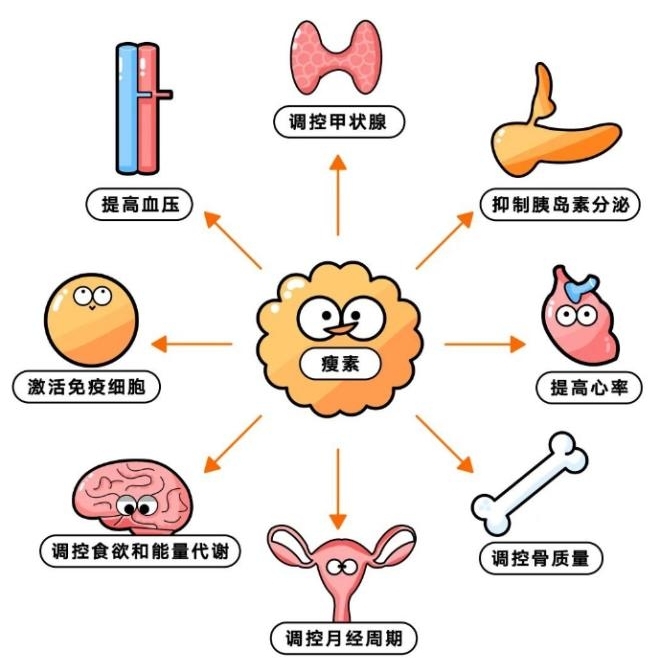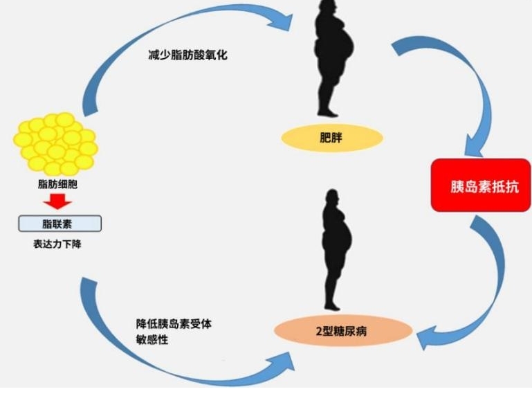 二、脂肪細胞對胰島細胞的調(diào)節(jié)作用 現(xiàn)認為脂肪組織是內(nèi)分泌器官,可分泌多種脂肪細胞因子如游離脂肪酸、腫瘤壞死因子、瘦素、抵抗素、脂聯(lián)素等,這些因子在調(diào)節(jié)能量代謝平衡方面發(fā)揮重要作用。 1、瘦素(leptin)--其主要功能是對能量平衡及體重進行調(diào)節(jié)。瘦素主要由白色脂肪組織分泌,而胃黏膜、骨骼肌、乳腺、胎盤、骨髓、垂體等處也能分泌一定量的瘦素。 瘦素會給大腦(下丘腦部位)發(fā)信號,提示大腦,能量足夠了,不需要再吃了。 所以說,瘦素是一種讓你“吃飽就?!钡募に?.. 而研究發(fā)現(xiàn),在人體中,胰島素抵抗總是與高瘦素水平相關(guān)——無論體重大小。 另外還有研究發(fā)現(xiàn),瘦素還能獨立于胰島素降低血糖——瘦素水平低會導(dǎo)致胰高血糖素含量升高,久而久之,糖尿病便會接踵而至。