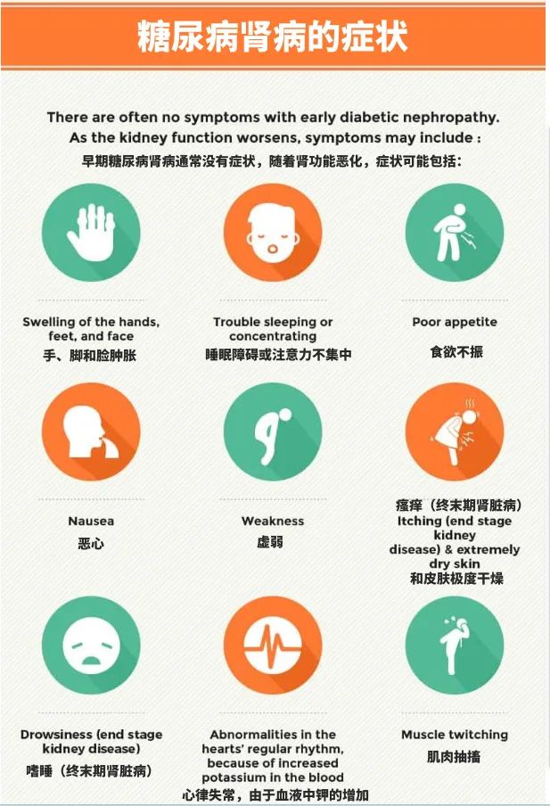 糖尿病腎病目前已成為慢性腎臟病和終末期腎病的主要原因,早期的糖尿病腎病通常沒(méi)有特征,但隨著腎功能惡化,癥狀可能包括:食欲不振、惡心、嗜睡等。