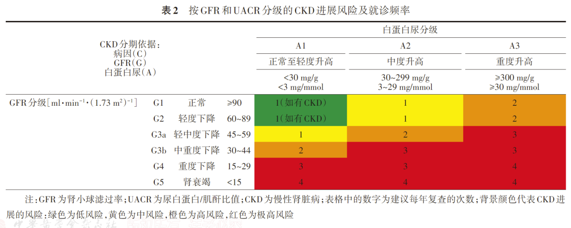 糖尿病腎病的分期按照腎臟病改善全球預(yù)后(KDIGO)指南建議聯(lián)合慢性腎臟病CKD分期(G1~G5)和白蛋白尿分期(A1-A3),描述和判定糖尿病腎病的嚴(yán)重程度。