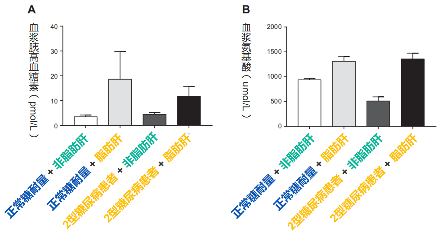 發(fā)表于美國(guó)生理學(xué)雜志上的研究“Hyperglucagonemia correlates with plasma levels of non-branched-chain amino acids in patients with liver disease independent of type 2 diabetes”指出:T2DM合并NAFLD者血漿氨基酸(特別是具有促胰高血糖素作用的氨基酸)增加,血漿胰高血糖素水平顯著升高,并可能獨(dú)立于血糖發(fā)生。